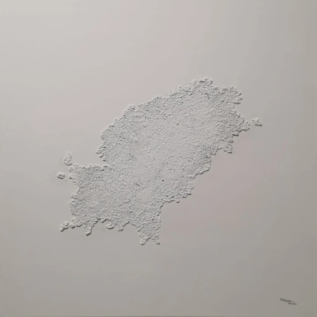 La obra juega con el relieve y el vacío, invitando al espectador a explorar la pureza de las formas y el equilibrio entre materia y espacio. “Cal-a Comte” transmite calma, sobriedad y elegancia, convirtiéndose en un punto focal sutil pero poderoso en cualquier entorno.