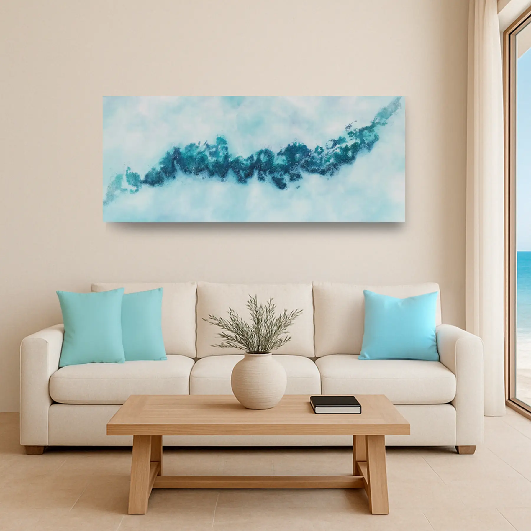 La composición transmite ligereza y movimiento, ofreciendo al espectador una visión etérea y cambiante que invita a la contemplación. Una obra que aporta frescura, serenidad y un aire evocador a cualquier espacio.